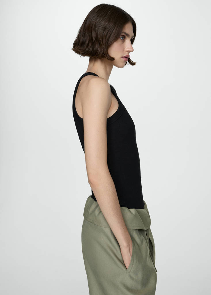 Cotton blend fabric. Halter neck. Sleeveless. No closure. Available Plus. Standard design. Festival Season. Slim fit. Wide straps. Lightweight fabric. Fitted design. Round neck. Rib knit fabric. Straight design