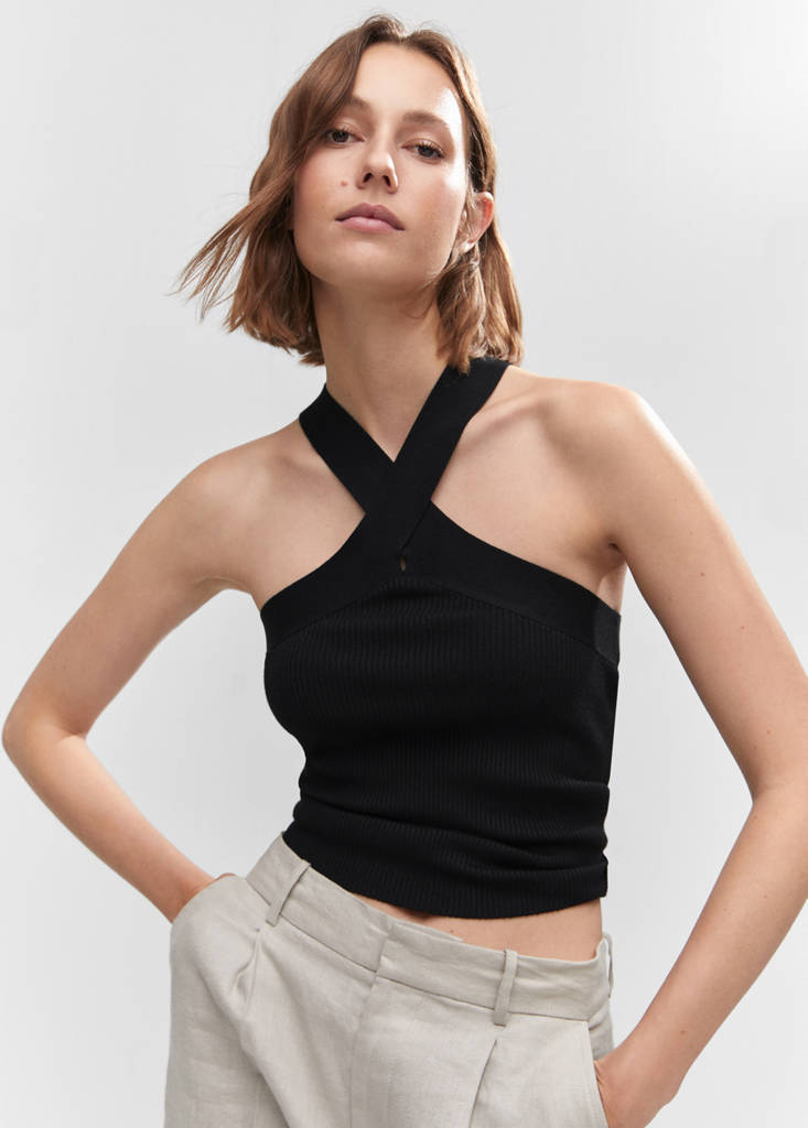 Halter-neck knitted topInitial price struck through [US$ 39.99 ]US$ 39.99Current price [US$ 27.99 ]US$ 27.99-30%Select a colourBlackThe model is wearing size S and is 5'11" tall.Select your sizeXXSNot available. I want it!XSNot available. I want it!SNot available. I want it!MNot available. I want it!LNot available. I want it!XLNot available. I want it!XXLNot available. I want it!Notify meKnit fabric. Halter neck. Crossed neckline. Wide straps. No closure. Party, ceremony, and communion collection. Fitted designDetails, composition and careStore availability