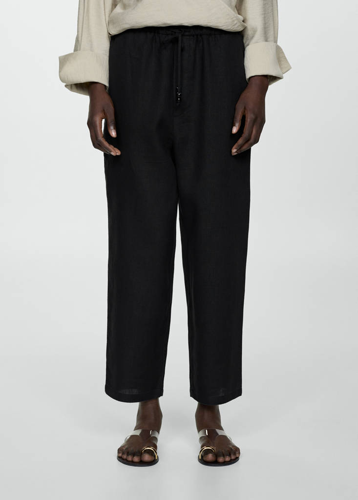 100% linen pantsInitial price struck through [US$ 69.99 ]US$ 69.99Current price [US$ 48.99 ]US$ 48.99-30%Select a colourBlackThe model is wearing size S and is 5'11" tall.Select your sizeXXSNot available. I want it!XSNot available. I want it!SNot available. I want it!MNot available. I want it!LNot available. I want it!XLNot available. I want it!XXLNot available. I want it!DimensionsNotify meLinen fabric. Fluid fabric. Crop design. Jogger design. Mid-rise. Elastic waist with tie closure. Two side pockets. Two welt pockets at the back. Inner liningDetails, composition and careStore availability