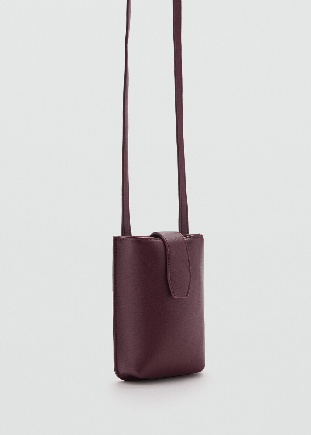Efecto piel. Asa ajustable. Tres ranuras para tarjetas. Cierre de solapa con botón a presión. Ideal para guardar el móvil y las tarjetas.