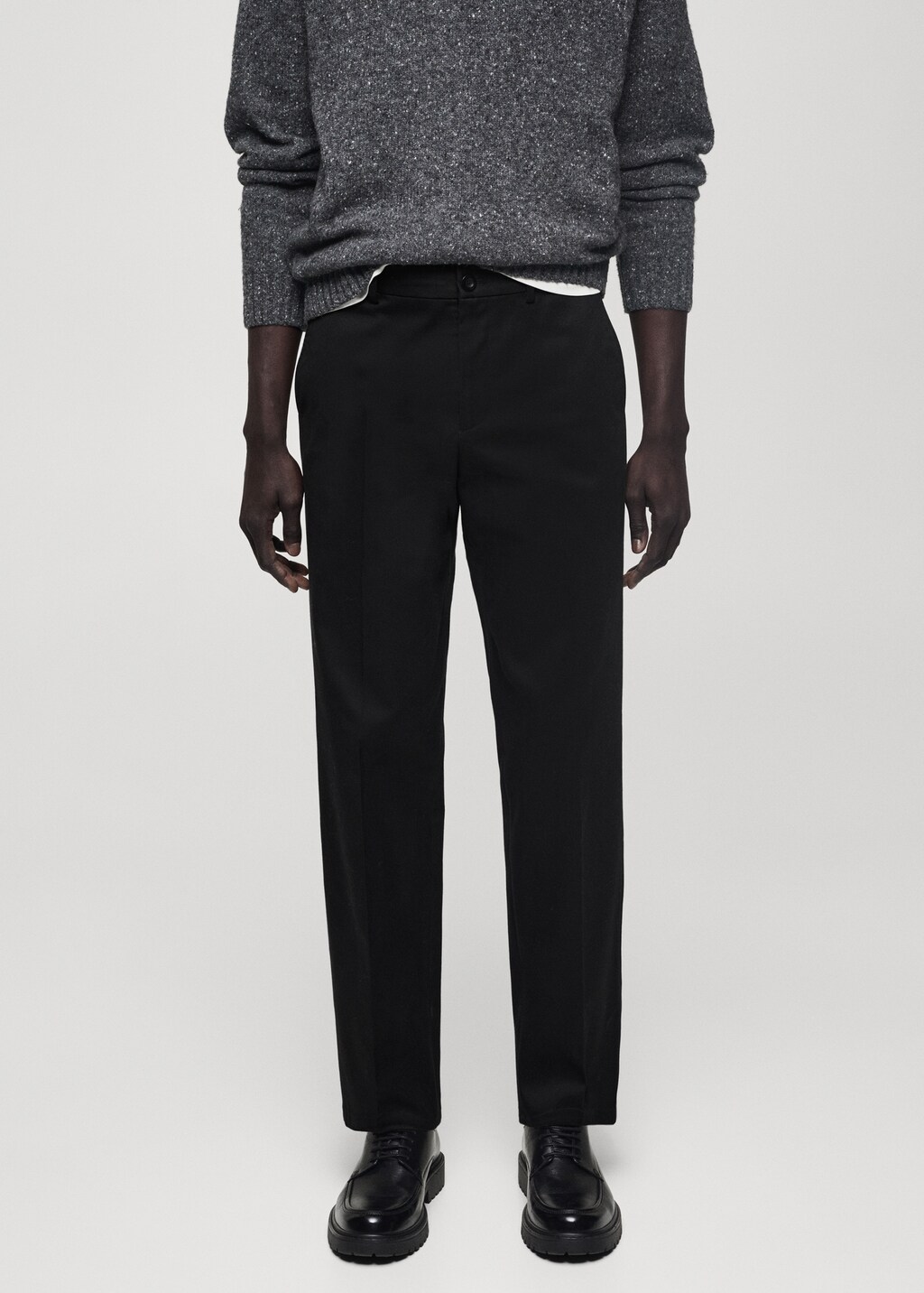Straight-fit. Tejido de algodón. Cintura con cordón interior ajustable. Cierre de cremallera y botón. Trabillas para cinturón. Bolsillos laterales. Bolsillo portamonedas. Dos bolsillos de solapa en la parte posterior. Bajo recto. Campaña Antoine Griezmann. Tejido de punto grueso. Detalle de raya planchada.
