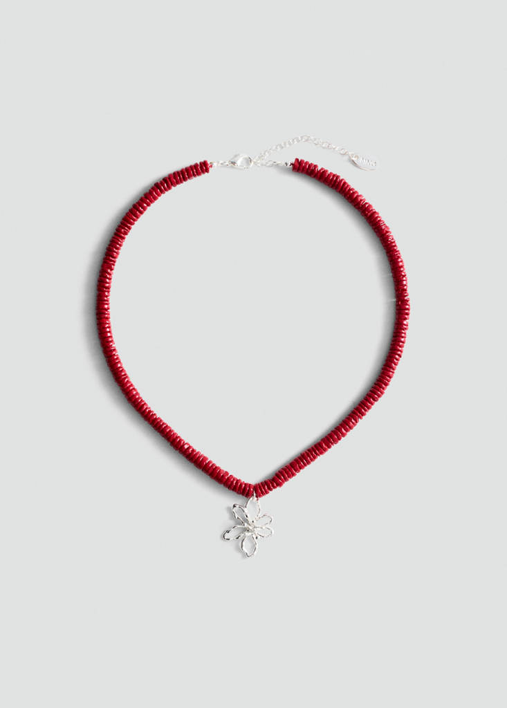Diseño concha. Cierre de cadena y mosquetón. Colgante de flor