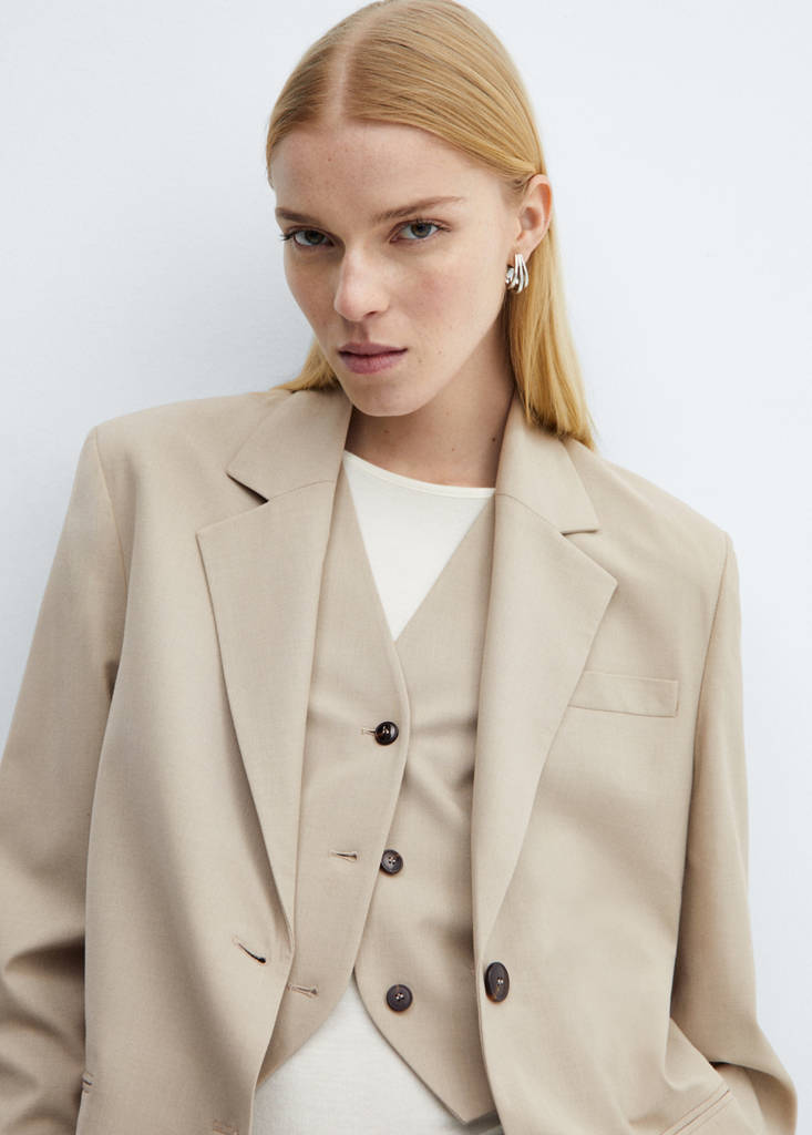 Diseño recto. Estilo traje. Cuello pico con solapa. Solapas con muesca. Manga larga con puños abotonados. Bolsillo de ribete en el pecho. Cierre de dos botones en la parte delantera. Abertura posterior en el bajo. Forro interior. Total look. Disponible Plus. Looks de oficina. Dos bolsillos de ribete en la parte delantera
