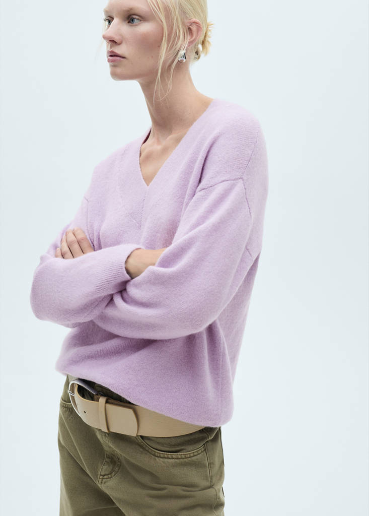 Jersey oversize cuello picoPrecio inicial tachado [US$ 89.99 ]US$ 89.99Segundo precio tachado [US$ 71.99 ]US$ 71.99Precio actual [US$ 25.99 ]US$ 25.99-71%Selecciona un colorMorado claro/pastelLa modelo lleva la talla S y mide 5'10".Selecciona tu tallaXS¡Últimas unidades!S¡Últimas unidades!MNo disponible ¡Lo quiero!LNo disponible ¡Lo quiero!XLNo disponible ¡Lo quiero!MedidasAñadirTejido de punto. Punto medio. Diseño oversize. Cuello pico. Manga larga. Sin cierreDetalles, composición y cuidadosDisponibilidad en tienda