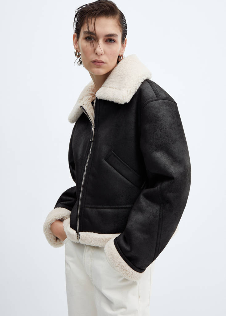 Diseño recto. Diseño corto. Cuello de borreguito. Manga larga. Cierre de cremallera en la parte delantera. Bolsillos laterales. Forro interior. Diseño doble faz