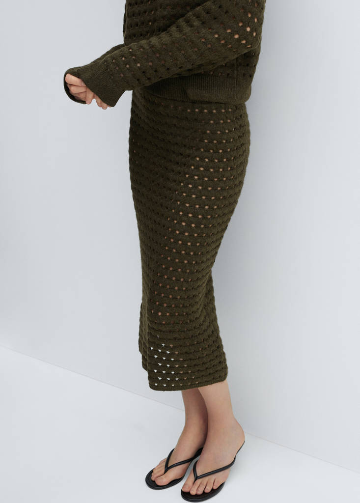 Falda punto detalles caladosPrecio inicial tachado [US$ 89.99 ]US$ 89.99Segundo precio tachado [US$ 62.99 ]US$ 62.99Precio actual [US$ 7.99 ]US$ 7.99-91%Selecciona un colorKhakiSelecciona tu tallaS¡Últimas unidades!MNo disponible ¡Lo quiero!LNo disponible ¡Lo quiero!MedidasAñadirPunto medio. Diseño midi. Diseño recto. Cintura con goma elástica. Detalles calados. Total lookDetalles, composición y cuidadosDisponibilidad en tienda