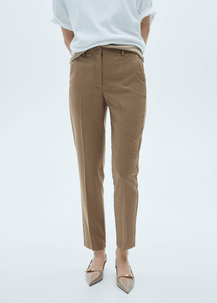 Corte skinny. Diseño largo. Diseño crop. Tiro medio. Disponible en liso o estampado. Dos bolsillos laterales. Trabillas. Cierre oculto de botón, gancho y cremallera