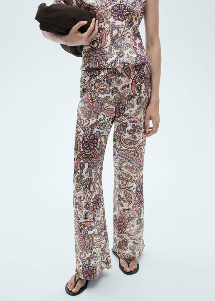 Tejido fluido. Tiro alto. Diseño largo. Diseño recto. Cierre cremallera invisible en el lateral. Total look. Diseño estampado
