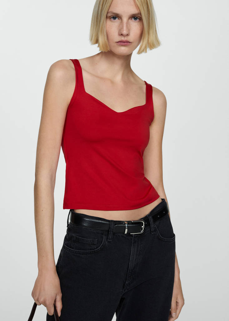 Top punto tirantesPrecio inicial tachado [US$ 29.99 ]US$ 29.99Precio actual [US$ 23.99 ]US$ 23.99-20%Selecciona un colorRojoLa modelo lleva la talla S y mide 5'10".Selecciona tu tallaXXSNo disponible ¡Lo quiero!XSNo disponible ¡Lo quiero!SNo disponible ¡Lo quiero!MNo disponible ¡Lo quiero!LNo disponible ¡Lo quiero!XLNo disponible ¡Lo quiero!XXLNo disponible ¡Lo quiero!AvísameTejido elástico. Escote corazón. Sin mangas. Tirantes finos. Diseño entalladoDetalles, composición y cuidadosDisponibilidad en tienda