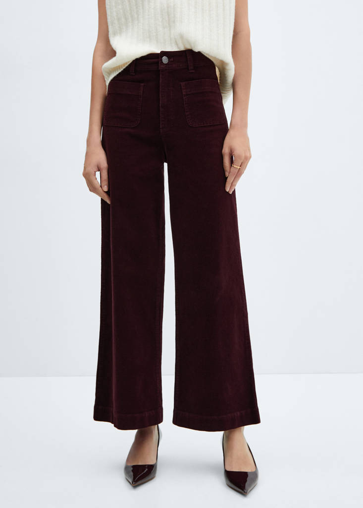 Tejido de pana. Tejido mezcla de algodón. Diseño culotte. Diseño crop. Tiro alto. Trabillas. Dos bolsillos de parche en la parte delantera. Dos bolsillos de parche en la parte posterior. Cierre de cremallera y botón. Largo interior 72 cm
