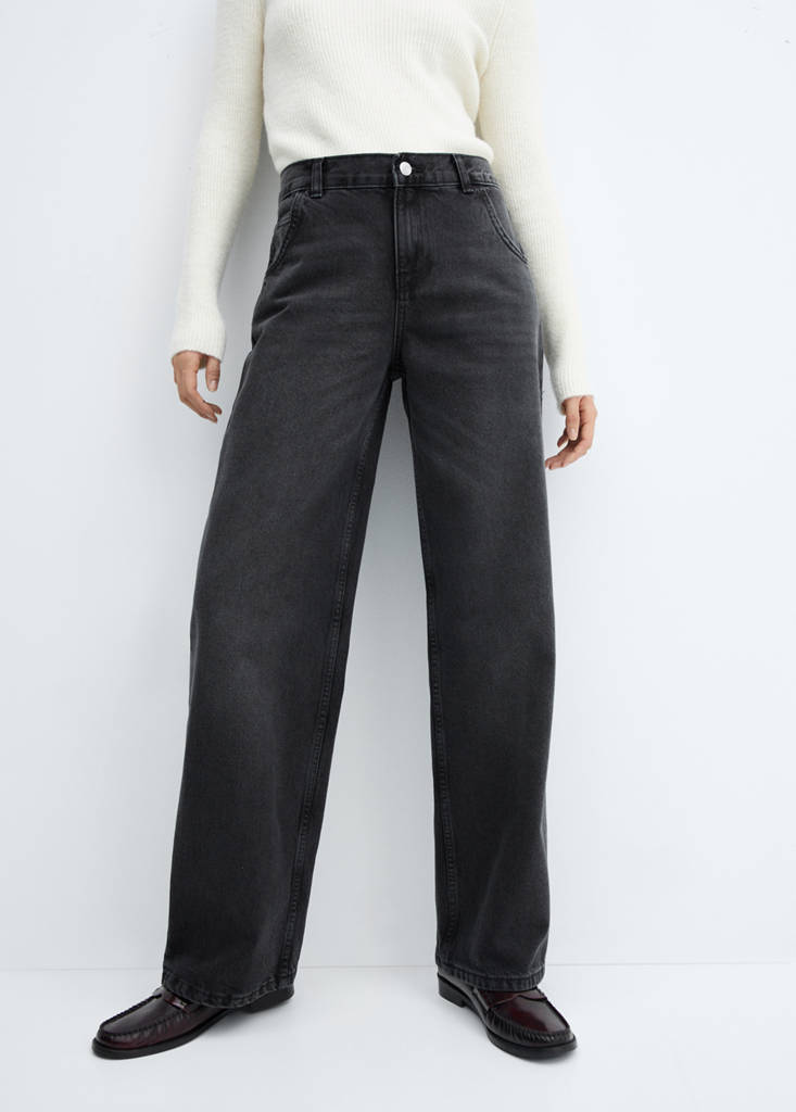 Tejido de algodón estilo tejano vaquero. Color efecto lavado. Diseño largo. Diseño wideleg. Tiro bajo. Cinco bolsillos. Cierre de cremallera y botón. Trabillas. Largo interior 81,5 cm. Full length