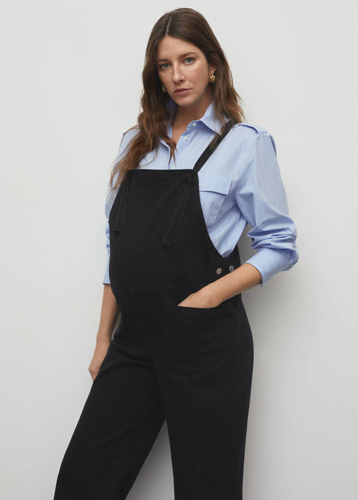 Tejido de algodón estilo tejano vaquero. Diseño recto. Diseño crop. Cuello recto. Tirantes cruzados en la espalda. Dos bolsillos de parche laterales. Dos bolsillos de parche en la parte posterior. Largo interior 68 cm. Te recomendamos comprar tu talla habitual. Proporciona comodidad y libertad de movimiento. Premamá