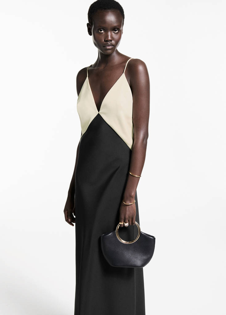 Tejido fluido. Estilo lencero. Diseño recto. Diseño largo. Cuello pico. Tirantes finos. Espalda con escote. Cierre de cremallera en la parte posterior. Forro interior. Colección fiesta, ceremonia y comunión