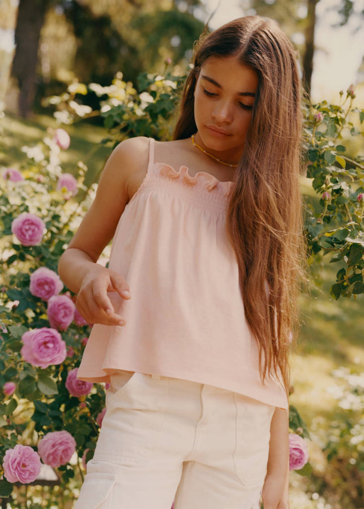 Camiseta algodón tirantesPrecio inicial tachado [US$ 17.99 ]US$ 17.99Precio actual [US$ 13.99 ]US$ 13.99-22%Selecciona un colorMelocotónSelecciona tu talla5-6 años (45.75 in)No disponible ¡Lo quiero!7-8 años (50.5 in)No disponible ¡Lo quiero!9-10 años (55 in)No disponible ¡Lo quiero!11-12 años (59.75 in)No disponible ¡Lo quiero!13-14 años (64.5 in)No disponible ¡Lo quiero!MedidasAvísame100% algodón. Detalle fruncido. Diseño recto. Tirantes finos. Cuello cuadrado. Sin mangasDetalles, composición y cuidadosDisponibilidad en tienda
