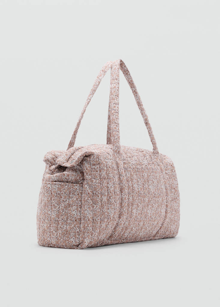 Welcome collection. Maternity Collection. Tejido 100% algodón. Tejido acolchado. Diseño rectangular. Diseño estampado floral. Dos asas de hombro. Bolsillos interiores. Cierre de cremallera. Bolsillo exterior. Conjunto disponible