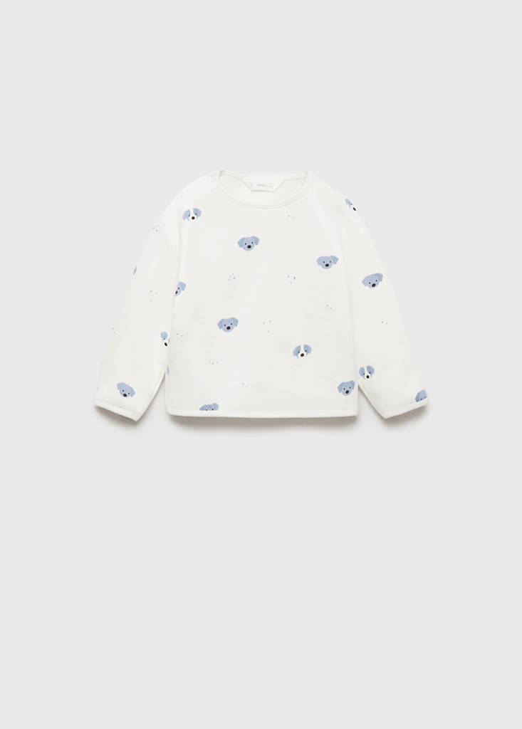 100% Algodón. Cuello redondo. Manga larga. Estampado de perros. Cierre de botones en el hombro. Total look