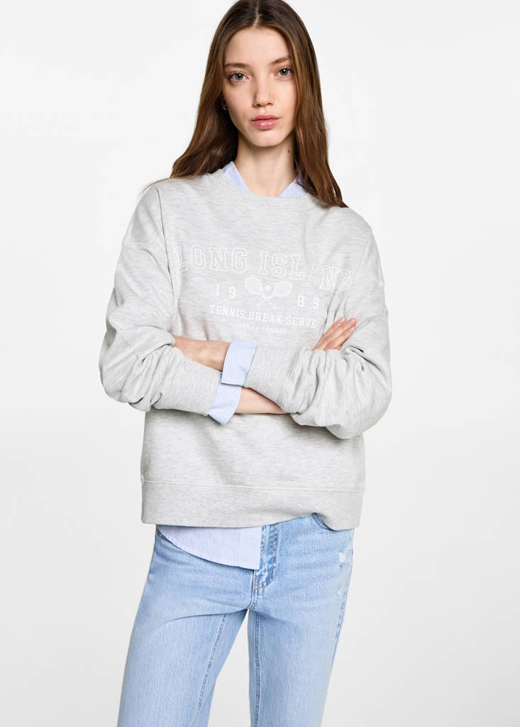 100% Algodón. Manga larga. Cuello redondo. Dibujo estampado en la parte delantera. Cuello, puños y bajo en canalé